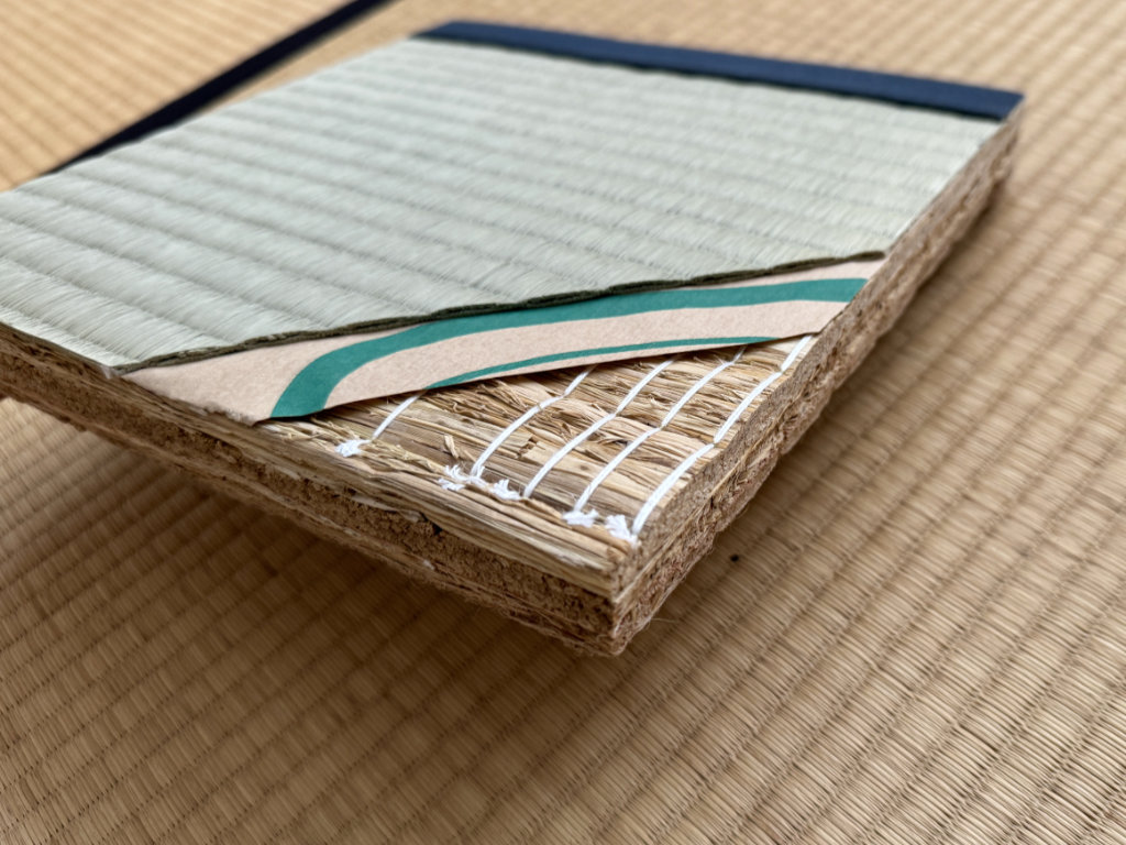 Les bords du tatami sont ensuite recouverts d’un ourlet en tissu, le « tatami-heri », souvent en lin ou coton, parfois orné de motifs décoratifs. Chaque étape, du tressage à la couture, requiert une attention méticuleuse pour garantir la solidité et la longévité du produit fini. Il faut environ 5 à 6 semaines pour réaliser un tatami traditionnel depuis la récolte de la paille de riz jusqu’au produit fini, dont la majeure partie est consacrée au séchage naturel de la paille. Aujourd’hui, bien que la fabrication se soit partiellement mécanisée, des artisans comme TAKAYAMA Isao perpétuent ces techniques traditionnelles assurant au tatami son authenticité et sa qualité unique.