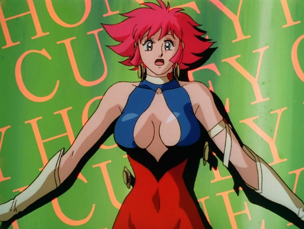 Il n’est d’ailleurs pas inutile de préciser cette dimension sexy de Cutey Honey pour éviter tout malentendu. Il ne s’agit pas là d’un animé érotique ou pornographique, mais légèrement coquin et grivois tout au plus (le manga poussait le bouchon beaucoup plus loin). On est bien plus proche de City Hunter que de Golden Boy ou même de Wicked City. Go Nagai force un peu le trait lors des changements de costume de son héroïne, inhérent au style Magical Girl. Sans oublier le personnage de Danbei et de son fils qui ne loupent pas une occasion de jouer les voyeurs, ce qui occasionne de nombreuses séquences comiques, mais rien de plus. De même, si Honey n’hésite pas à jouer de ses charmes pour se sortir de situations périlleuses lors ses enquêtes, cela reste sage et simplement objet de comédie. Les designers et animateurs se sont cependant fait plaisir à rendre la plastique de Honey qui n’a jamais été aussi affriolante.