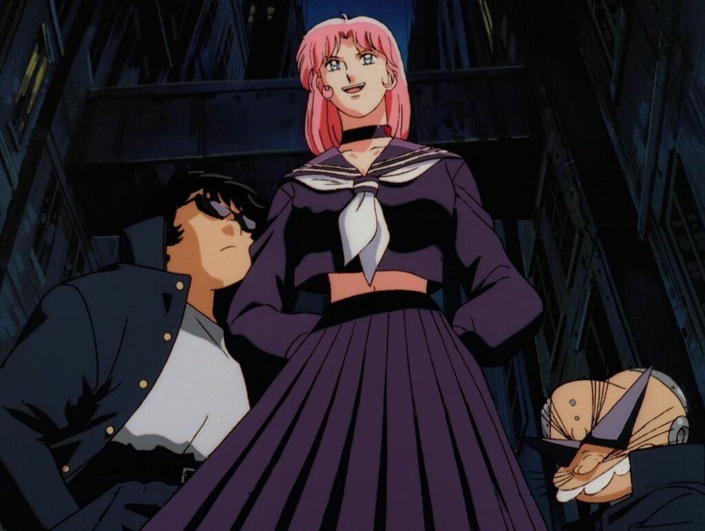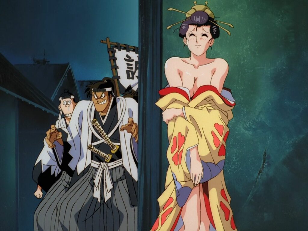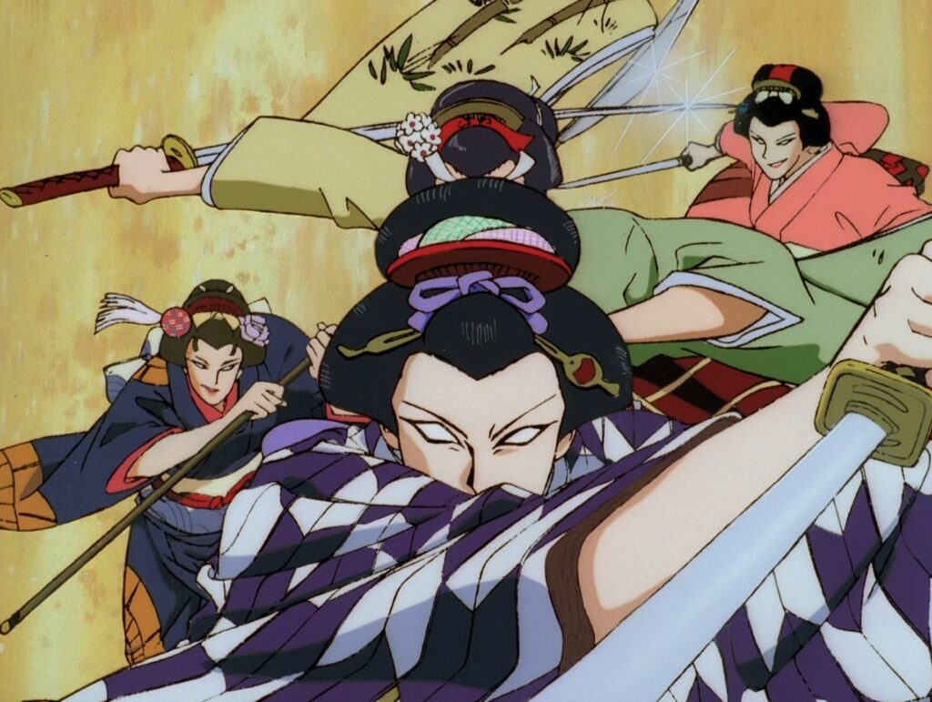 L’un des plus grand plaisir de cette série d’OAV est directement lié au transformisme de Honey qui permet, comme on l’a évoqué, de multiplier les hommages cinématographiques, en particulier dans la seconde partie. L’épisode 6 par exemple, convoque les grandes figures du jidai geki, tandis que l’épisode 7 s’intéresse aux furyôs et aux films du genre sukeban (gangs de lycéennes) ainsi qu’aux films de prison style Scorpion.