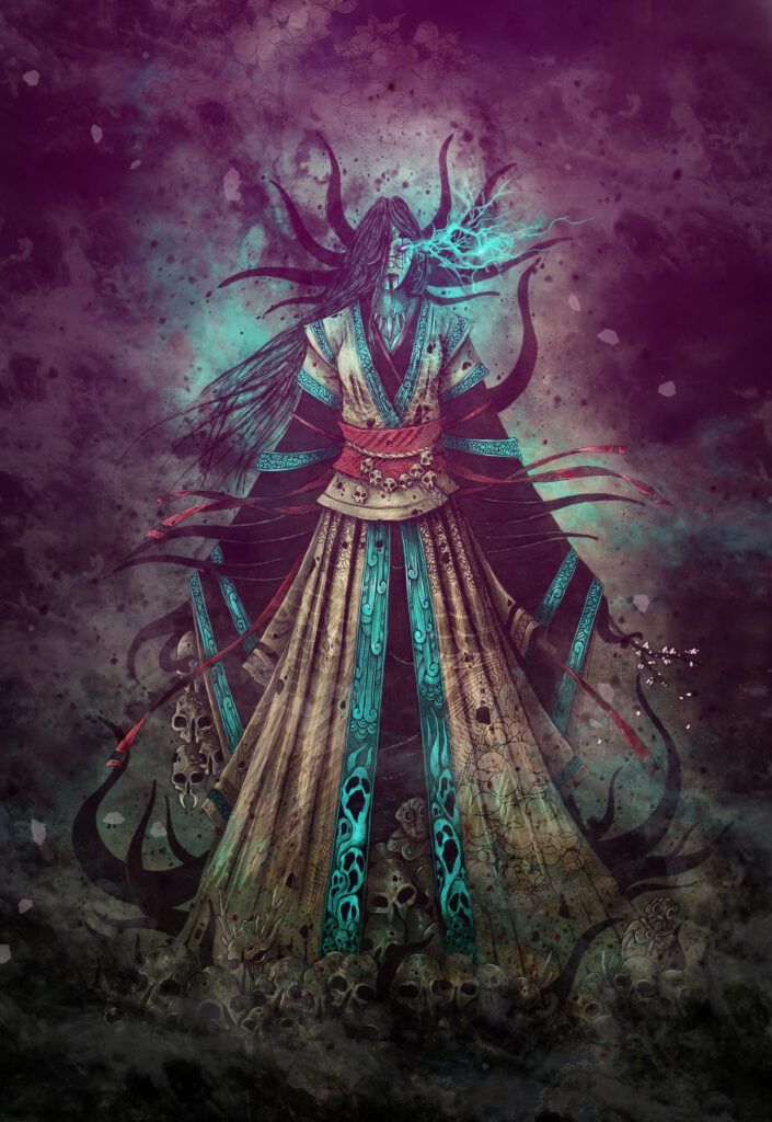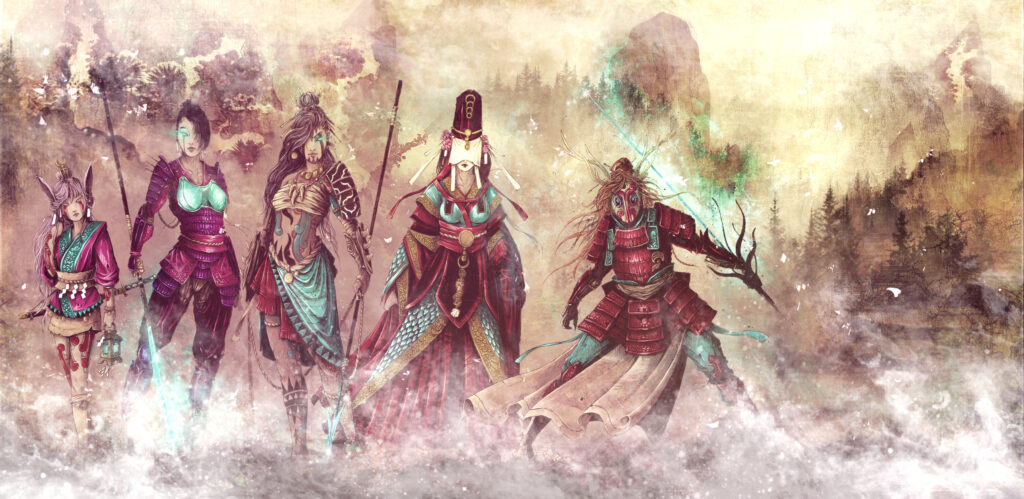 À la suite de ces événements, Nanda s’est proclamé Empereur et a fondé la cité de Sakura-kyô, qui est devenue la capitale et le centre du pouvoir de l’Empire. Différents clans et tribus ont été unifiés sous sa bannière, que ce soit par la diplomatie, la ruse, ou par la force, étendant ainsi son emprise sur la majeure partie de l’archipel. Aujourd’hui, le Dieu-Empereur immortel s’est reclus dans son palais, au cœur de la capitale impériale et n’en est plus jamais ressorti. Intrigues de Cour et complots fomentés dans l’ombre, guerres de territoire et luttes de pouvoir entre Daimyo et autres seigneurs de guerres, attaques de yûrei ou intrusions d’esprits maléfiques du Yomi-no-kuni, c’est dans ce contexte que commence votre aventure dans l’Empire des Cerisiers.