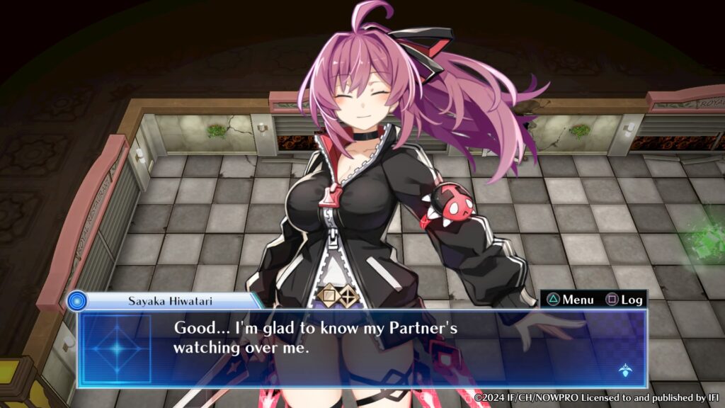 À partir de là, il va falloir guider cette fille aux cheveux rouges dans un premier donjon servant de tutoriel, jusqu’à rejoindre la sortie où attend Shina. Naturellement gentille, elle nomme l’inconnue « Sayaka ». Vous l’accompagnez et sortez toutes les trois du donjon. Enfin, toutes les deux ? Il semble que seule Sayaka peut « vous » voir, parler et entendre. Très vite, elle « vous » fait confiance et vous appelle même “partner”… en aucun cas « vous » ne voudriez lui faire de mal, n’est-ce pas ?
