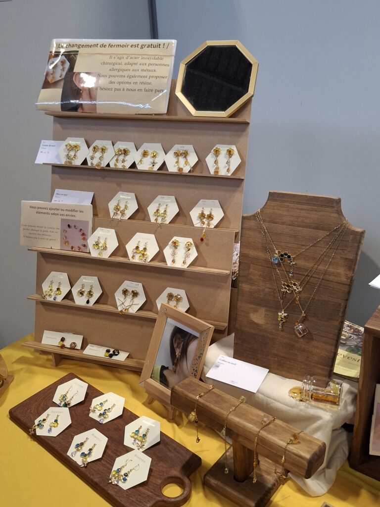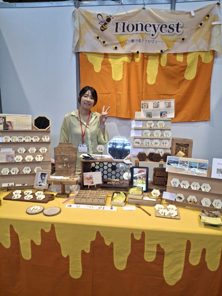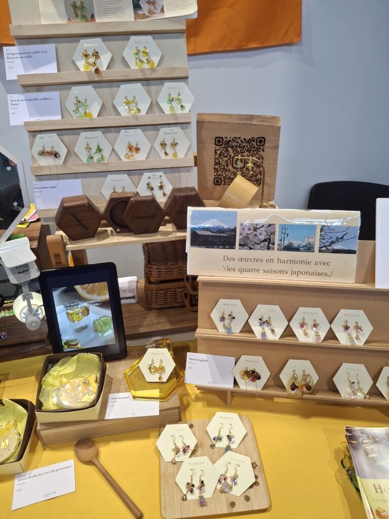 A la suite d’un accident de vélo, l’ancienne infirmière Reika a changé de voie pour se consacrer à son bien-être et sa santé en fondant sa marque Honeyest car elle adore Winnie l’ourson. Sur son stand, l’artisane présente ses créations originales et uniques : des boucles d’oreilles ou des colliers composés d’une fiole pot de miel et de divers charms à en faire saliver les ours. A noter qu’il était possible de personnaliser son propre accessoire en choisissant les breloques.
