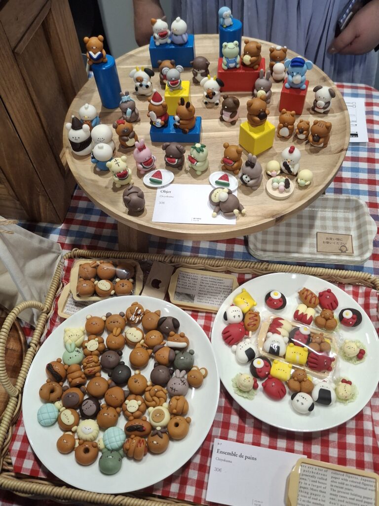 L’histoire de Chiyokuma commence un jour où l’enfant de l’exposante de 3 ans jouait avec de la pâte à modeler. L’artiste essaya de rendre kawaii (mignonne) la grenouille modelée par son fils. Et aujourd’hui, à Japan Expo, ce n’est pas un batracien à découvrir mais de nombreuses figurines de personnages animaux enfantins à croquer qui auraient pu sortir tout droit d’un dessin animé. Kawaii desu ne (C’est mignon, n’est-ce pas ?)