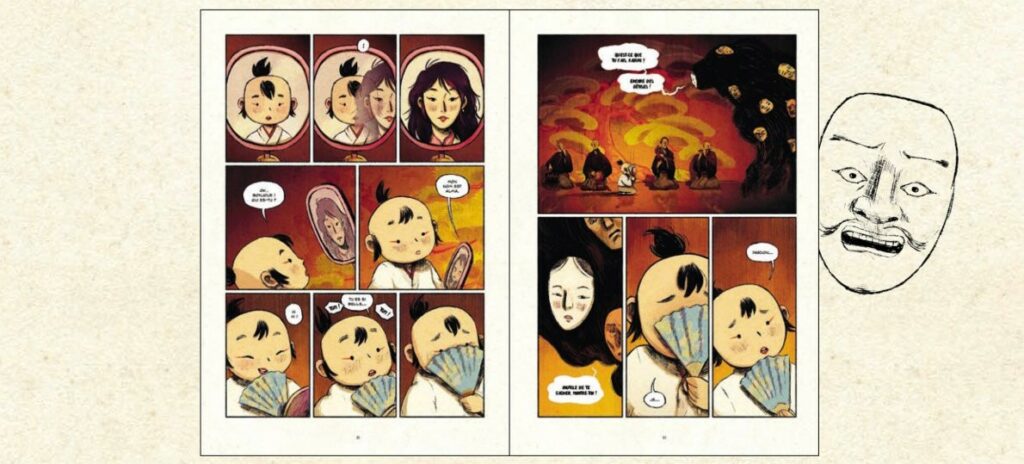 Cet enfant, c’est Kabuki, celui-là même qui donne son nom au titre. Une petite fille née dans le corps d’un garçon. Ou plutôt, enfermée par les autres dans cette identité qui n’est pas la sienne. Pourquoi ce nom ? Parce qu’elle, au lieu de porter un masque comme l’exige le théâtre Nô, rêverait de se maquiller, de sourire, de grimacer, de laisser libre cours à qui elle est, comme dans le théâtre Kabuki.