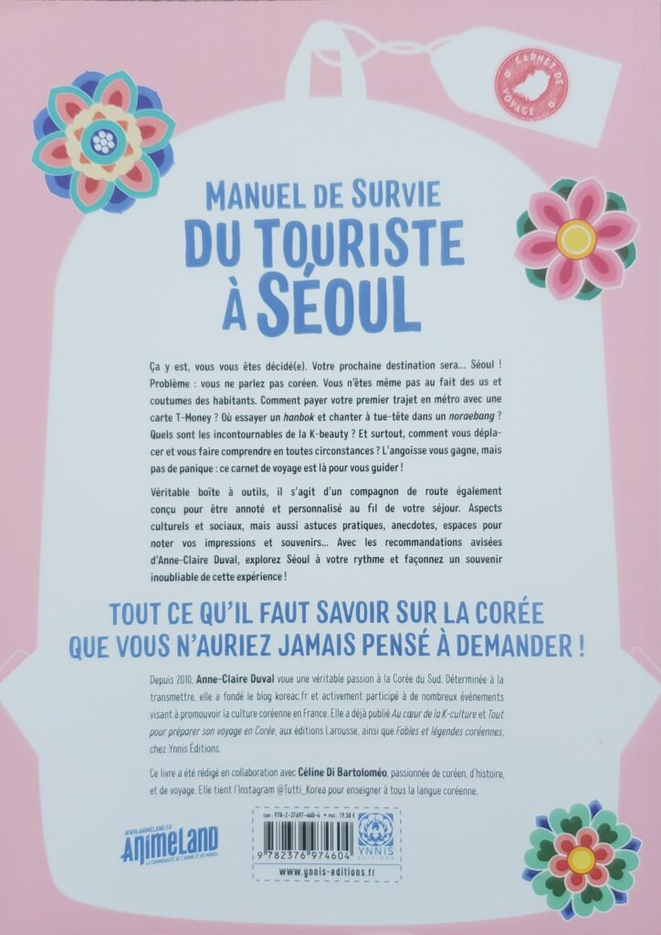 C’est un compagnon idéal pour partir quelques jours ou pour quelques mois à Séoul. Hyper pratique, très détaillé et surtout extrêmement ludique, ce livre rend la langue coréenne facile et accessible tout en informant efficacement.