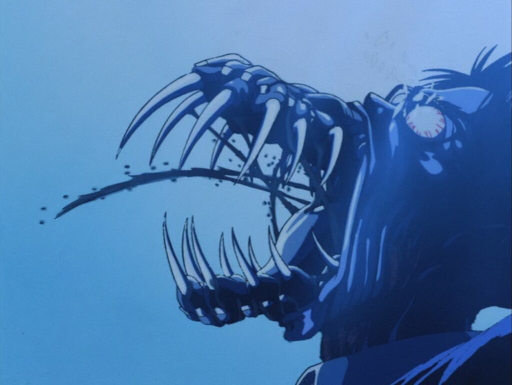 Wicked City s’inscrit parfaitement dans cette catégorie. De plus, en se passant de la supervision des chaînes de TV, l’OAV permet une plus grande liberté de ton et s’adresse à un public plus adulte. C’est ce format qui permettra d’ailleurs la naissance du genre hentai, entraînant la production de toute une série de titres à l’intérêt fort discutable, à base de monstres tentaculaires, style Urotsukidoji. Il serait d’ailleurs tentant de classer Wicked City dans cette dernière catégorie, avec son mélange d’horreur, d’érotisme et de polar. Et pourtant, le film parvient à ne pas se vautrer dans le crapoteux et à s’élever bien au dessus. Une réussite due au grand talent de formaliste de Kawajiri, qui va se révéler être un metteur en scène hors pair.