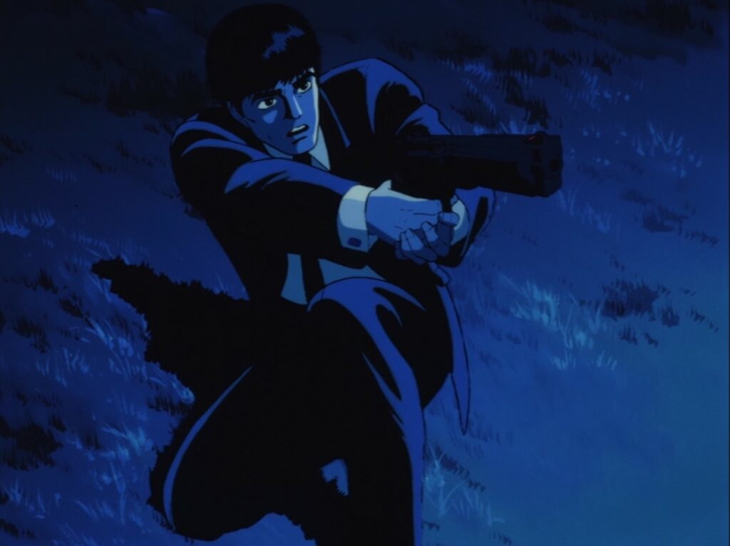 Par cette utilisation si caractéristique du bleu, il instille une atmosphère glacée et urbaine, très « film noir » à Wicked City. Le noir est blanc en couleur, pour ainsi dire.