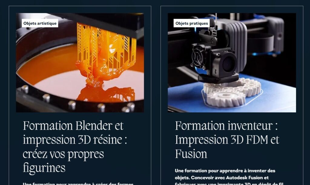 De manière schématique, je dirais que les profils les plus créatifs seront davantage dirigés vers une formation Blender + impression résine, et que ceux qui sont plus branchés bricolage et inventions seront dirigés vers la formation Fusion + impression FDM.