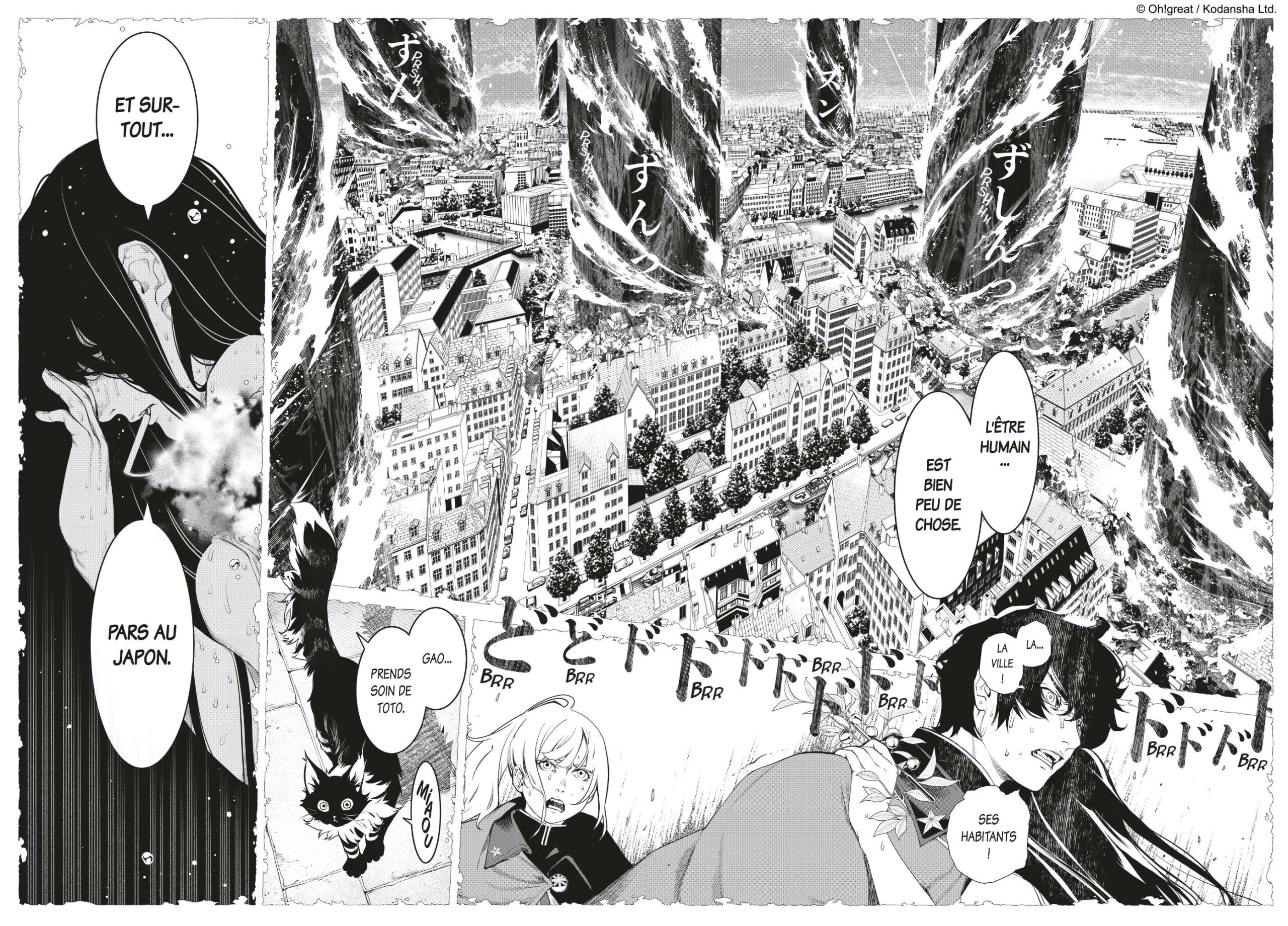 Oh!great : En premier lieu, j’ai discuté avec mon éditeur. On a beaucoup parlé du contexte de Kaijin Fugeki. Ça a été très long de déterminer le chemin qu’allait prendre l’œuvre, mais on a, tout de suite, été d’accord pour dire que le début du manga devait se passer en Angleterre. En effet, il n’y aurait pas eu Jin dans le premier volume relié (tankôbon) si nous n’avions pas pris cette décision. J’ai commencé par penser à deux personnages complémentaires. Ici, il y a Gao qui représente l’Occident et Jin qui représente l’Orient. Ça n’a pas été difficile de créer le personnage de Gao. On l’a fait très rapidement. Pour Jin, cela a été plus compliqué. Lorsque nous parlons de l’œuvre et de son évolution, nous sommes toujours quatre. Il y a trois éditeurs et moi. On a plusieurs fois discuté des tenants de Jin et on a fini par se demander pourquoi c’était aussi dur de travailler le personnage. In fine, comme il représente l’Orient, on a décidé qu’il allait être à l’image des dieux japonais. Au Japon, on croit qu’il y a une divinité en chaque chose. Du coup, il y a des milliers de dieux et c’est quelque chose qu’il est très compliqué à assimiler même pour les Japonais. Jin est à l’image de tout cela. Il est aussi incroyable qu’un dieu et peut réaliser des grandes choses, mais il est complexe et difficile à comprendre.