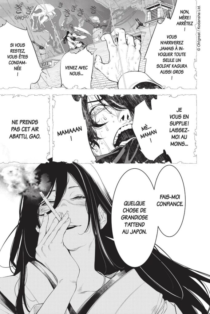 Aujourd’hui, c’est donc avec Kaijin Fugeki qu’Oh!great écrit une nouvelle page de son histoire. Le manga, publié chez Pika Édition, plonge dans un monde où des catastrophes surnaturelles liées aux dieux menacent l’humanité. Pour y faire face, des danseurs chamaniques, les fugeki, empruntent leur pouvoir aux divinités en mêlant traditions et sciences.
