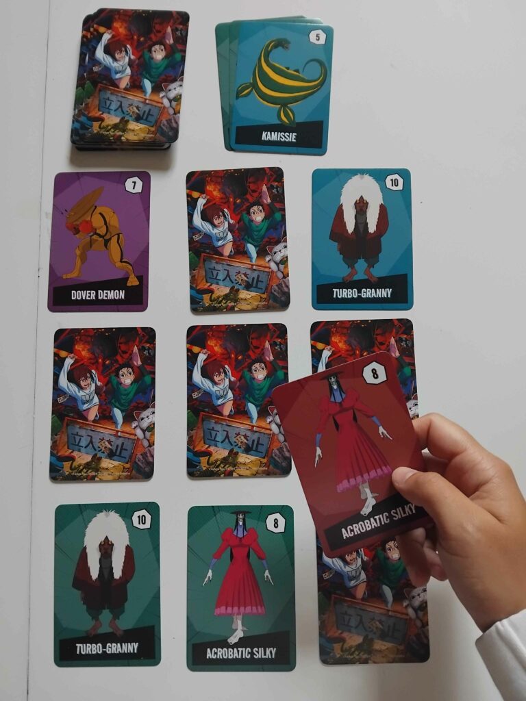 Pour le Golf, c’est le jeu de cartes Dandadan : vous devez retourner progressivement les 9 cartes faces cachées devant vous en tour par tour, avec pour objectif final d’avoir le plus petit nombre de points à la fin de la partie. Pour cela, soyez stratégiques : vous devez définir s’il vous est plus intéressant de remplacer une de vos cartes par une nouvelle (connue ou non), ou bien de sacrifier cette dernière pour en dévoiler une cachée.