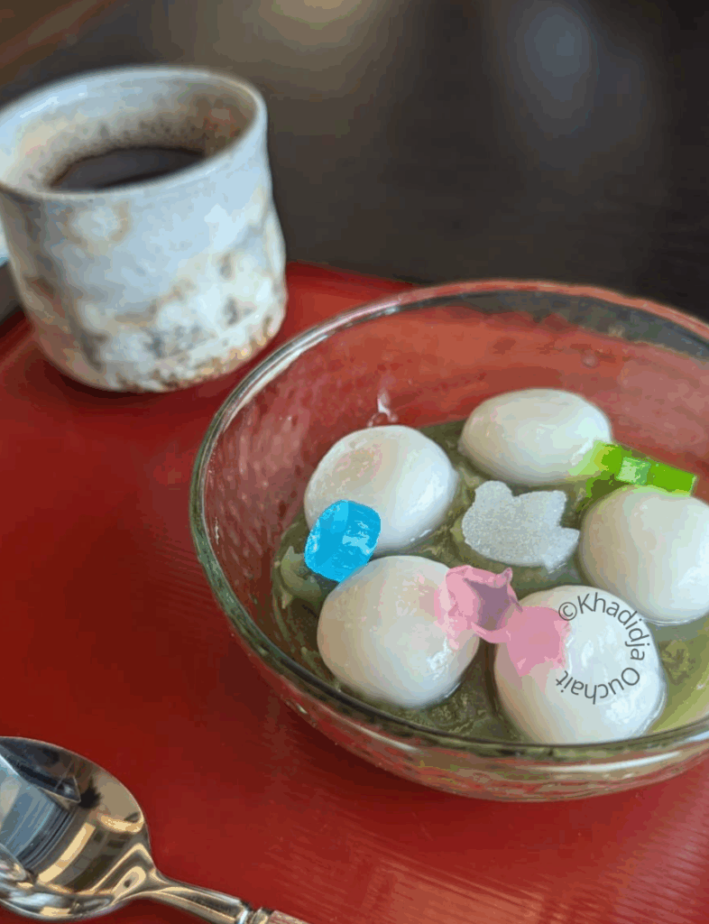 Mais c’est le Kokura Shiratama qui captive : un mélange entre textures et saveurs, magnifié par de petites gelées dont les formes sont renouvelées au gré des saisons, un délicat hommage à la fugacité et à la beauté de l’éphémère.