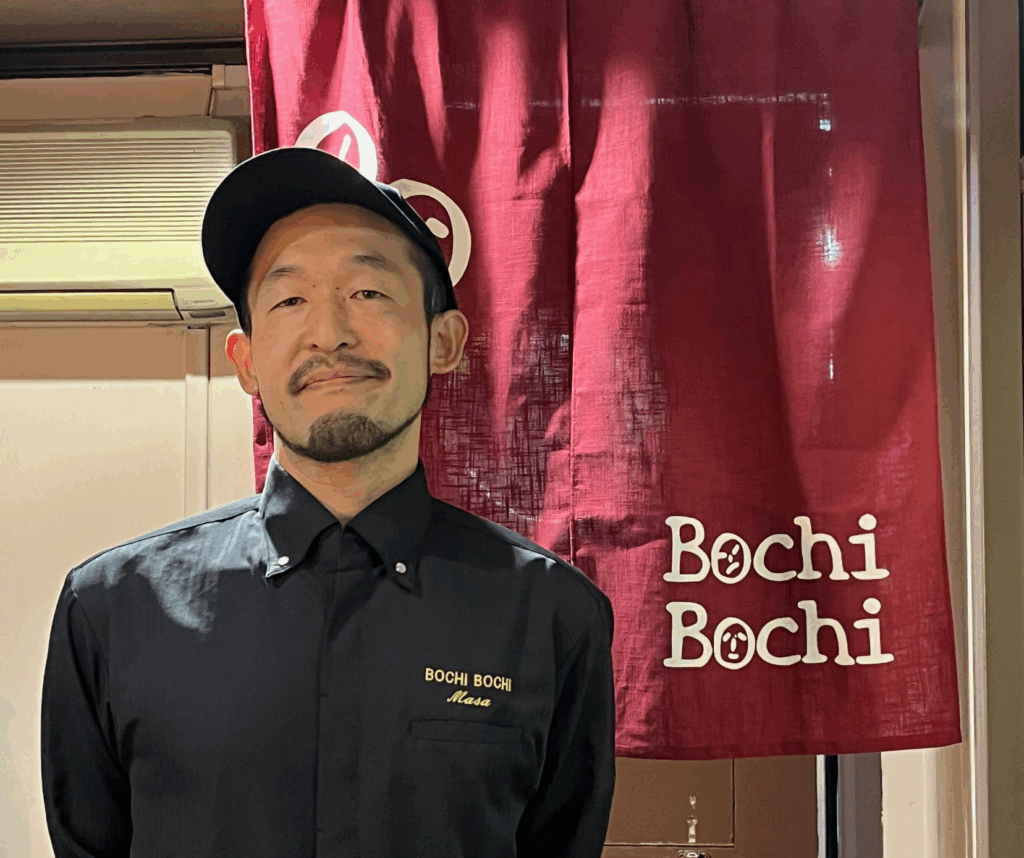 Pendant 1 ans il s’installe à la Commune, food court – et incubateur culinaire – lyonnais et s’initie à l’entreprenariat. En amoureux de la cuisine yōshoku, ce n’est qu’une étape puisque ce lieu est plutôt dédié à la restauration de comptoir. Il propose notamment des okonomiyaki. Toujours un clin d’œil à sa ville, Osaka. Puis, l’aventure Bochi Bochi commence. Bochi Bochi comme « la force tranquille » du chef Masa aux fourneaux depuis quelques mois de ce joli bistro rue Duquesne à Lyon.