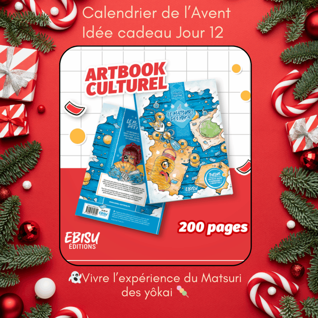 Déjà présent dans notre sélection d’idées cadeaux pour les amateurs de yôkai, Le matsuri des yôkai est un coup de cœur de la rédaction pour cet artbook culturel qui réserve à ses lecteurs une expérience complète de ce qu’est un matsuri. Première étape au Yatai, au stand ambulant de cuisine de rue avec un hommage à son précédent ouvrage Au menu du yatai, mêlant recettes de cuisine et illustrations de yôkai. Ensuite, rendez-vous au Matsuri pour découvrir les 16 premières illustrations d’un projet de jeu de cartes laissant la part belle aux yôkai et kami. À la 3e étape, on découvre encore davantage le travail de l’autrice et illustratrice Justine Touzot avec les coulisses de divers projets autour du Japon et son folklore entre 2021 et 2024. Le contenu du livre est généreux et gourmand avec 2 recettes de produits que l’on trouve lors de ces festivals. Et à la fin, c’est un guide de bonnes adresses pour « consommer le Japon en France » qui est proposé pour montrer que sans forcément prendre l’avion, on peut découvrir l’Archipel et sa culture.