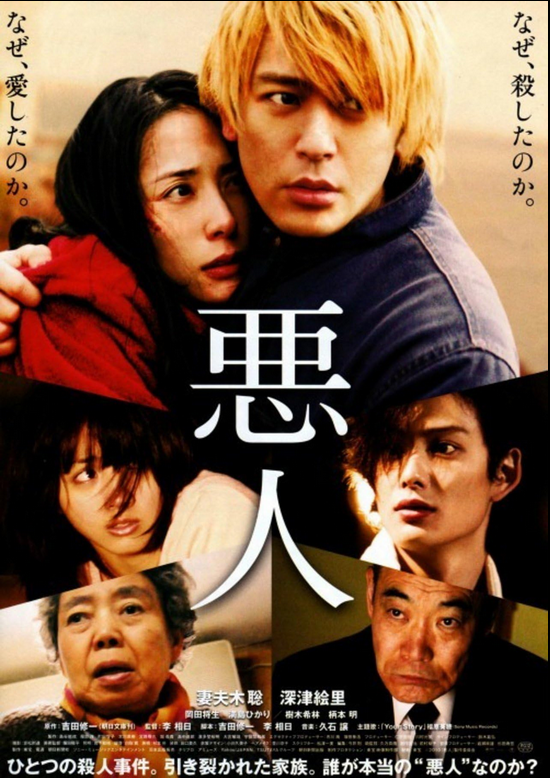 Le réalisateur n’en était pas pour autant à son coup d’essai, puisque Le Maître du Kabuki est son douzième long métrage et que son premier – un moyen métrage d’une cinquantaine de minute et film de fin d’étude – Chong, datait de 2000 et lui avait déjà permis de se faire remarquer. Il y abordait alors la thématique des Japonais d’origine Coréenne (qu’il est lui-même). S’en suivirent notamment 69 en 2004, premier film de studio (produit par Toei) et adaptation du roman éponyme et autobiographique de Ryû Murakami ; un joyeux film d’entrée dans l’âge adulte sur fond d’amitié, de drague et de révolte étudiante en 1969, et sa première collaboration avec un de ses acteur fétiche, Satoshi Tsumabuki. Puis Hula Girls en 2006, adapté d’une histoire vraie narrant le combat d’un groupe de fille créant un spectacle de danse hawaïenne pour sauver leur village minier du nord du Japon. Un joli succès critique et publique sur une thématique plutôt classique. Mais c’est avec Villain que l’on peut vraiment identifier la solidification du style du réalisateur en 2010 : un film très sombre et paradoxalement beau et humain qui marque ses retrouvailles avec Satoshi Tsumabuki dans un de ses plus beaux rôles et sa première collaboration avec le romancier Shûichi Yoshida avant Rage et Le Maître du Kabuki.