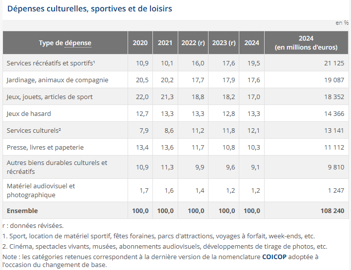 Mais, en 2022, les différents épisodes de confinement sont derrière nous. Comme l’indique cet utile tableau de l’Insee, qui présente en pourcentage les dépenses culturelles des Français ces dernières années, les autres loisirs jusqu’ici interdits puis restreints sont revenus sur le devant de la scène, en force parfois. Nous sommes ressortis de nos grottes.
