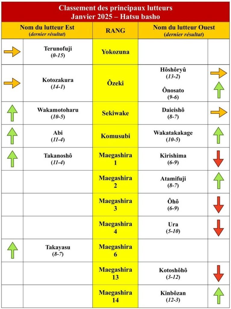 En seulement une année, le haut du classement du sumo a été complètement bouleversé. Le yokozuna Terunofuji a pris sa retraite, mais Hôshôryû et Ônosato l’ont remplacé. La pépite ukrainienne Aonishiki a connu une ascension fulgurante et vient s’ajouter à la rivalité naissante entre les deux yokozuna. De plus, Kirishima s’affirme comme un sérieux outsider, Wakatakakage et Takayasu semblent avoir retrouvé leur meilleur niveau, Kotozakura reste en embuscade, et Yoshinofuji monte en puissance, tout comme Atamifuji et Fujinokawa.