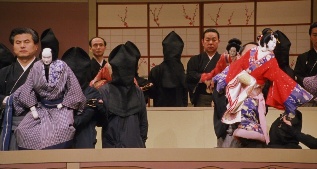 Son dixième long métrage, Dolls ドールス, présenté en avant-première à la Mostra de Venise en septembre 2002, propose de transposer une pièce de bunraku 文楽 (théâtre japonais datant du XVIIe siècle), dans la vie réelle.