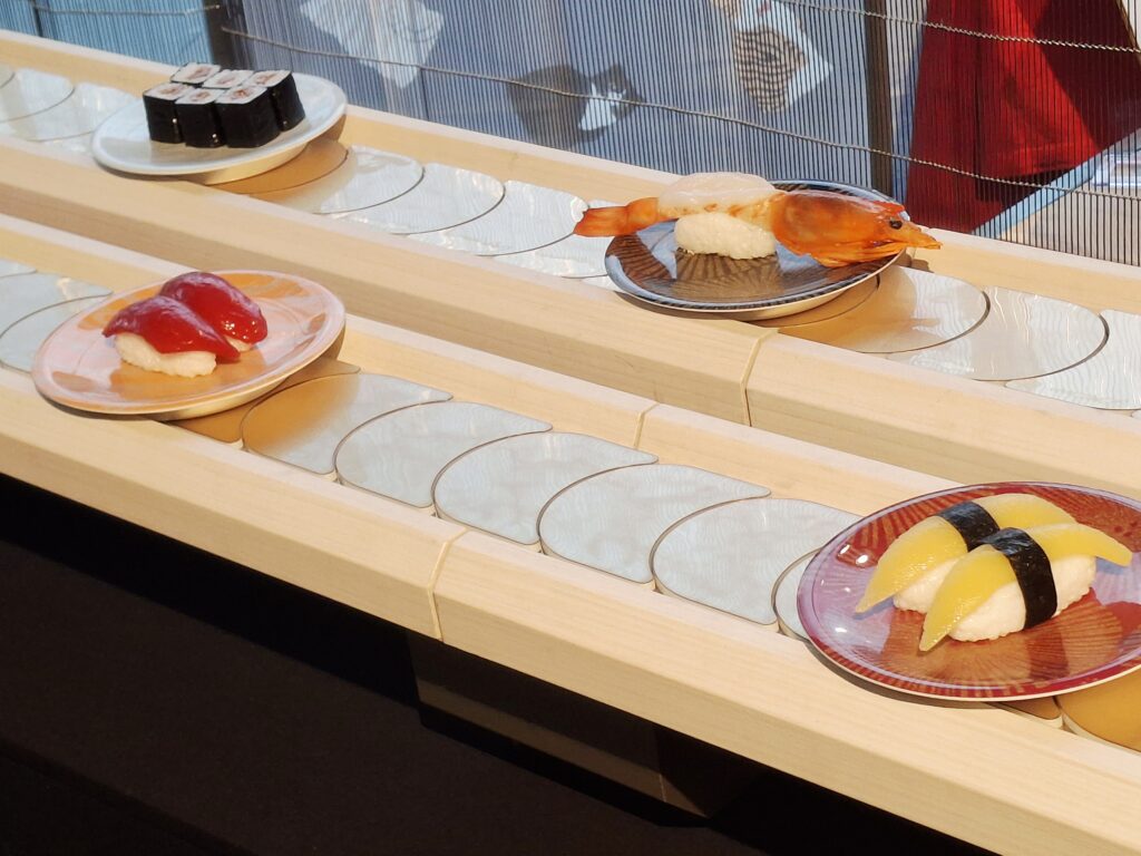 Après l’arrivée des nigiri-zushi à l’époque d’Edo, l’autre grande révolution du sushi a été les kaiten-zushi, restaurants à sushi où le client se sert directement en prenant les assiettes sur un tapis roulant. Le premier voit le jour dans la ville d’Osaka en 1950. Avec des prix bas et ce concept innovant qui séduit les familles, ce type d’établissement gagne en popularité et s’implante dans tout le Japon. De plus, l’Exposition universelle de 1970 à Osaka a offert une belle vitrine pour faire connaître les sushis au monde entier.