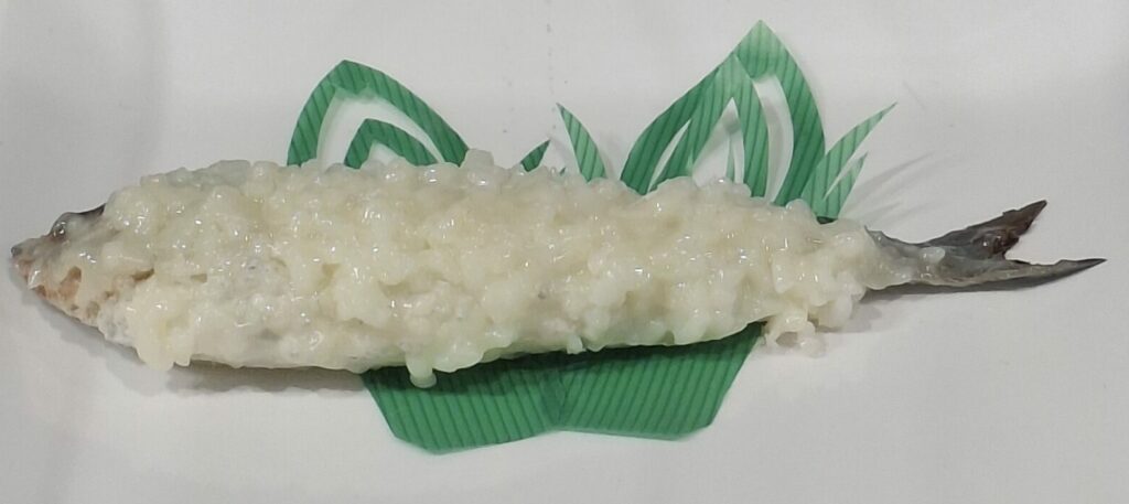 Nama-nare, sushi fermenté cru : Depuis le 15e siècle, le nare-zushi à l’ayu (plecoglossus altivelis) a très peu évolué et l’acidité réduite permet de déguster le riz. Consommé avant que le processus de fermentation ne soit complet, la chair du poisson est presque crue d’où le nom de nama-nare, sushi « cru et fermenté ».